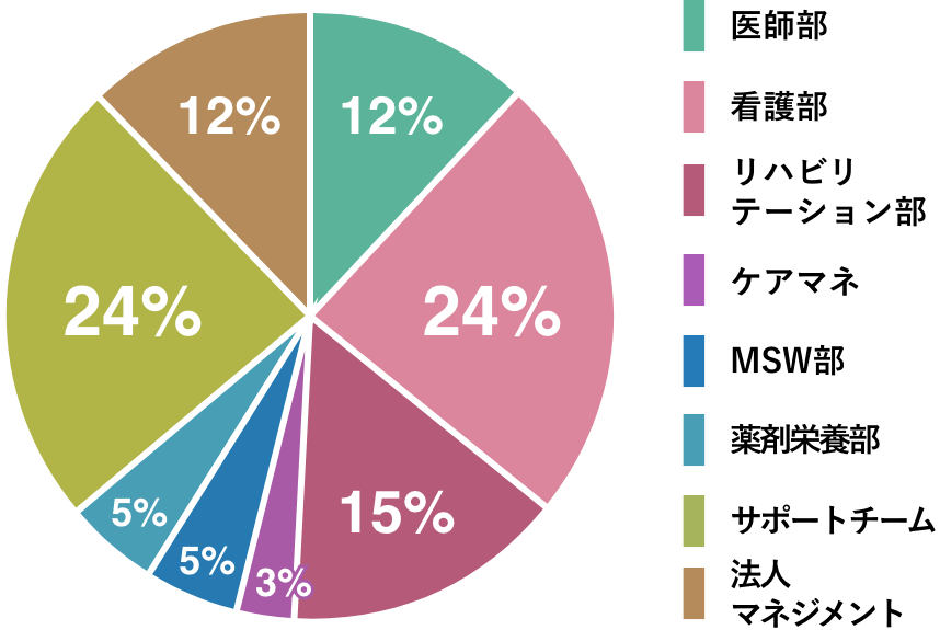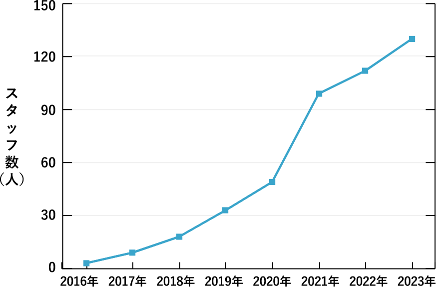 2016年の開院以来、地域医療の需要増加に応え続けるため、さつきホームクリニックのスタッフ数も増員し続けています。
