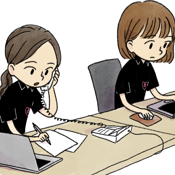 入職後は、さつきホームクリニックにおける診療の考え方や関わり方を直に感じられるよう、訪問診療に同行していただきます。また、実際の業務がどのように進められるのかを知るために、先輩職員の対応を隣で見学していただきます。