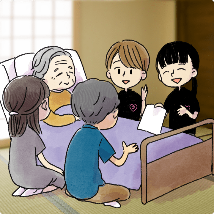在宅医療を受けたい方や病院の連携室、ケアマネジャー様などのご相談をお受けします。患者さまやご家族さまの想いに沿った在宅療養ができるよう、当クリニックの医師や看護師はもちろん、外部機関とも連携しながら情報を整理し、スムーズに初診につなげられるよう調整します。
